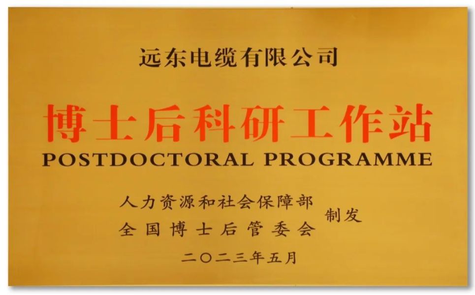 在國家各級(jí)博士后工作管理部門的大力支持和公司的高度重視下,遠(yuǎn)東電纜“博士后科研工作站”于2023年5月經(jīng)國家人事部、全國博士后管委會(huì)批準(zhǔn)設(shè)立,并于5月24日在“2023太湖人才峰會(huì)”開幕式上接受授牌。