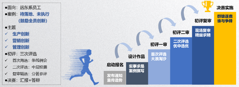 在遠(yuǎn)東,人人關(guān)注創(chuàng)新,人人愿意創(chuàng)新。多年來,公司內(nèi)部一直在營造創(chuàng)新環(huán)境,努力提升員工創(chuàng)新能力。設(shè)計(jì)創(chuàng)新案例競賽的目標(biāo)是希望通過“提煉問題、分析問題、解決問題、助推經(jīng)營管理”四個核心維度,每年選拔出一些優(yōu)質(zhì)案例,幫助企業(yè)創(chuàng)新變革。